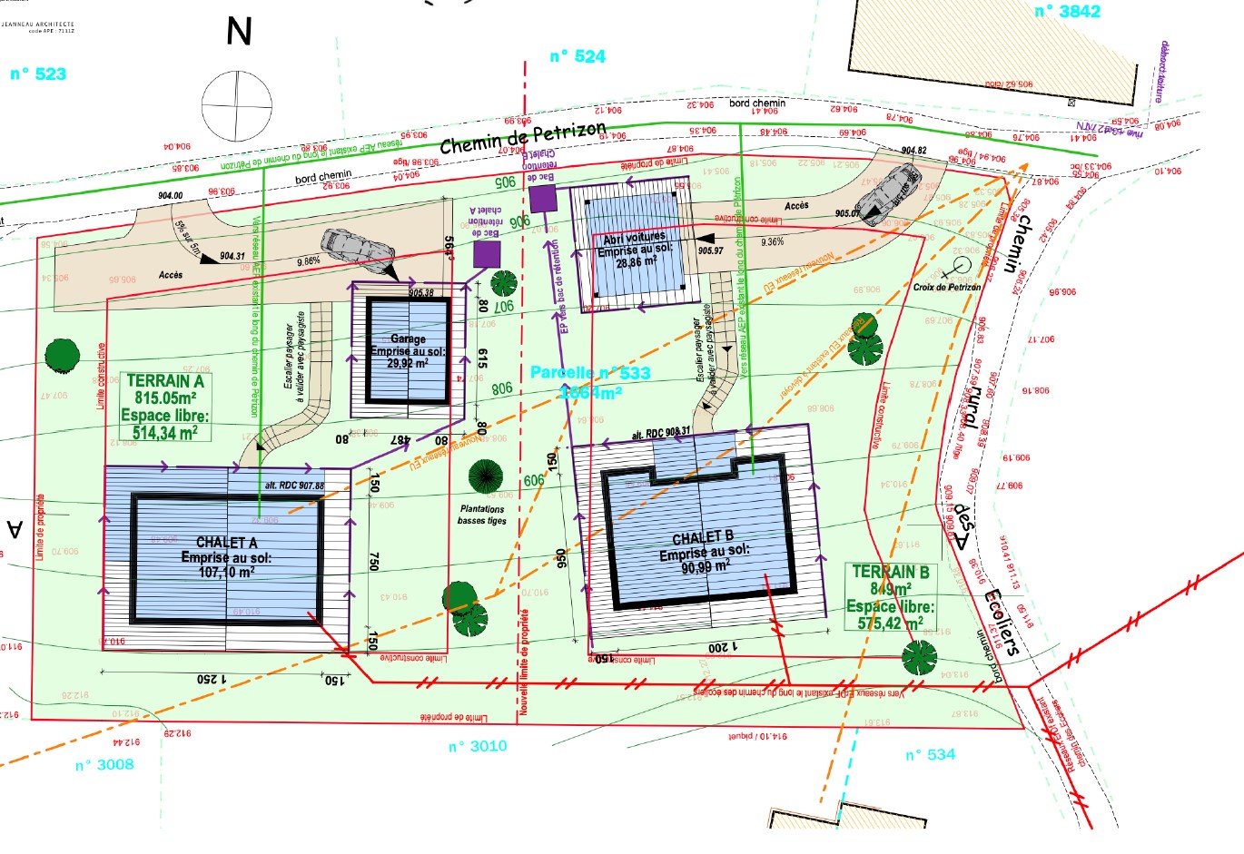 • Balcons/terrasse- jardin de 500 m² env., arboré côté route