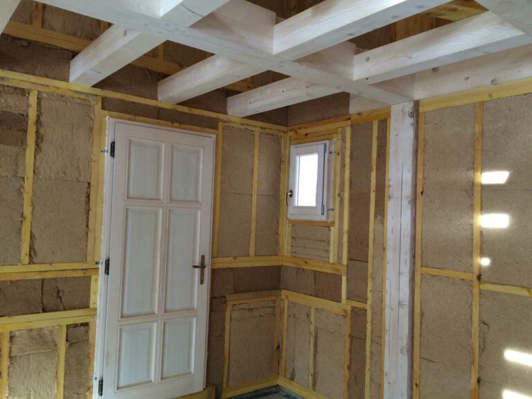 Par ailleurs, les traitements appliqués lors de la fabrication rendent la ouate de cellulose ininflammable, assurent sa longévité, et empêchent moisissures, rongeurs ou micro-organismes de s’y installer … Nous l’utilisons dans les cloisons intérieures et au sol.